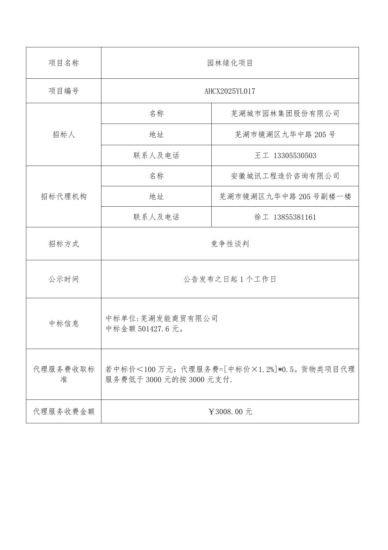 園林綠化項目成交結果公告